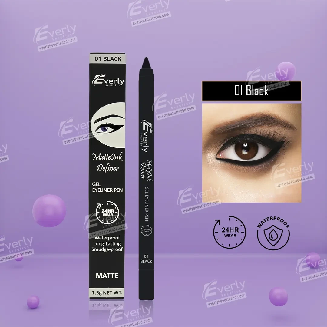 The Everly Beauties Matte Ink Definer Gel Eyeliner Pen Kajal is designed with a precise tip for easy application, allowing you to achieve sharp lines and intricate details with precision. Its long-lasting formula ensures your eyeliner stays put without smudging or fading throughout the day. Elevate your makeup routine with this versatile gel eyeliner pen that enhances your natural beauty.
