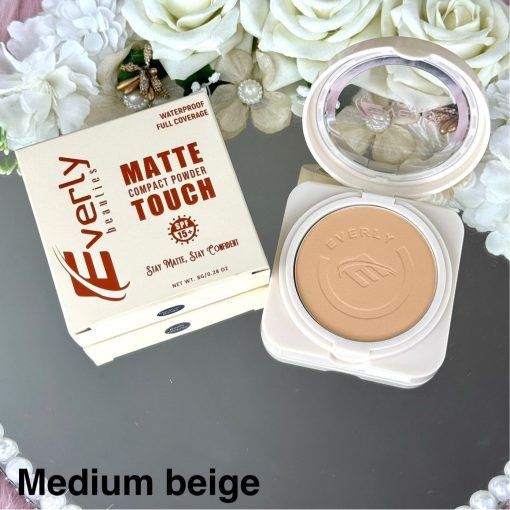 Everly Beauties Matte Touch Compact Powder delivers a smooth, flawless matte finish that keeps your skin looking fresh and shine-free all day. Its lightweight, finely milled formula blends effortlessly into the skin, helping to even out skin tone and minimize the appearance of pores. Perfect for setting foundation or for quick touch-ups, this compact powder provides natural-looking coverage without feeling heavy or cakey.