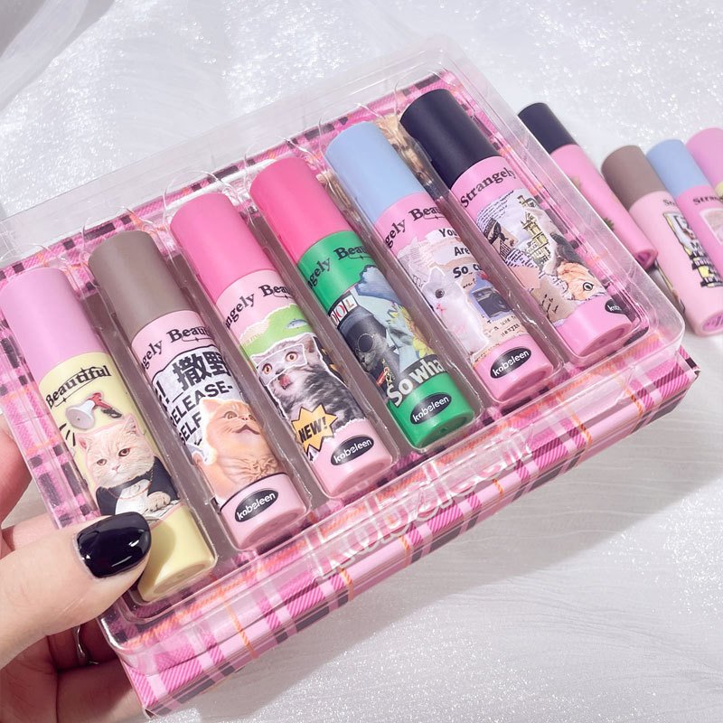 Add a playful pop of color to your lips with the Kobeleen Fun Meow Lip Glaze Set. Featuring 6 vibrant, glossy shades, this set gives your lips a juicy, shiny finish while keeping them soft and moisturized. Perfect for fun, everyday looks or bold statement styles.