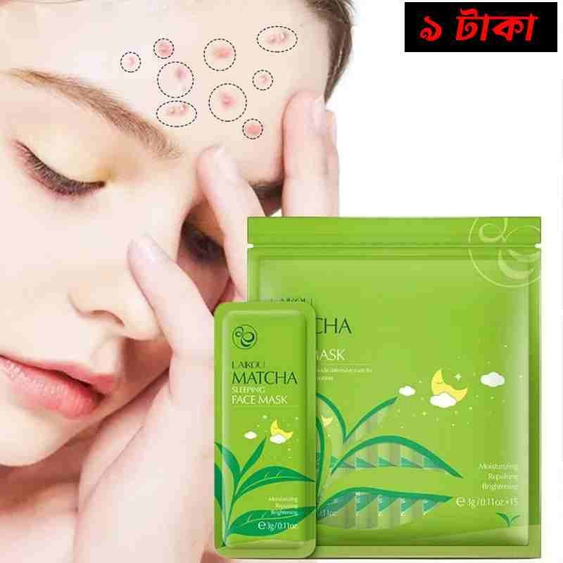Laikou Matcha Sleeping Face Mask contains matcha extract and other plant extracts, which help to soothe skin, repair damaged skin and lighten the skin effectively. It deeply nourishes the skin and smooth skin. Locking in the moisture of the skin.
