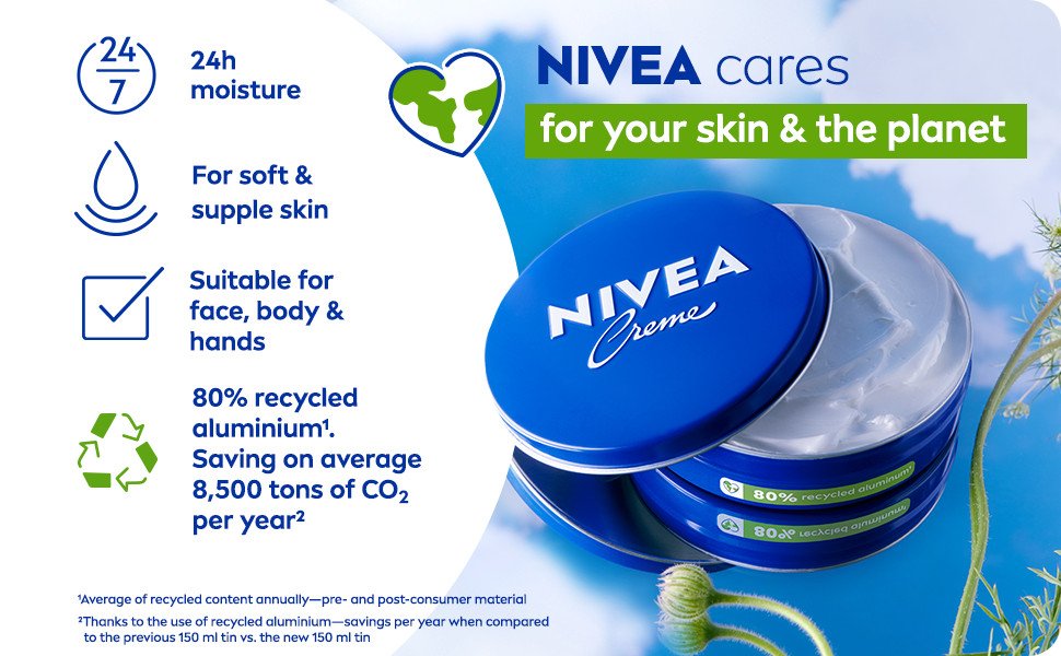 Pamper your skin withthe formula of Nivea creme which not only cares but also protects your skin leaving it healthy and moisturized