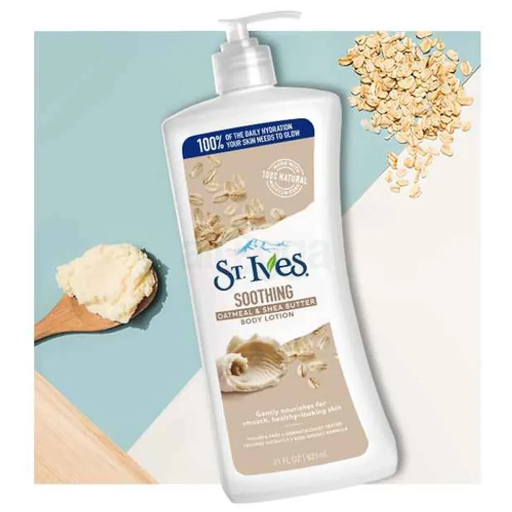 Experience soft, smooth, and healthy-looking skin with St. Ives Soothing Oatmeal & Shea Butter Body Lotion. Enriched with the goodness of natural oatmeal extract and rich shea butter, this ultra-hydrating lotion helps nourish, calm, and soothe dry skin, leaving it soft and supple all day long.