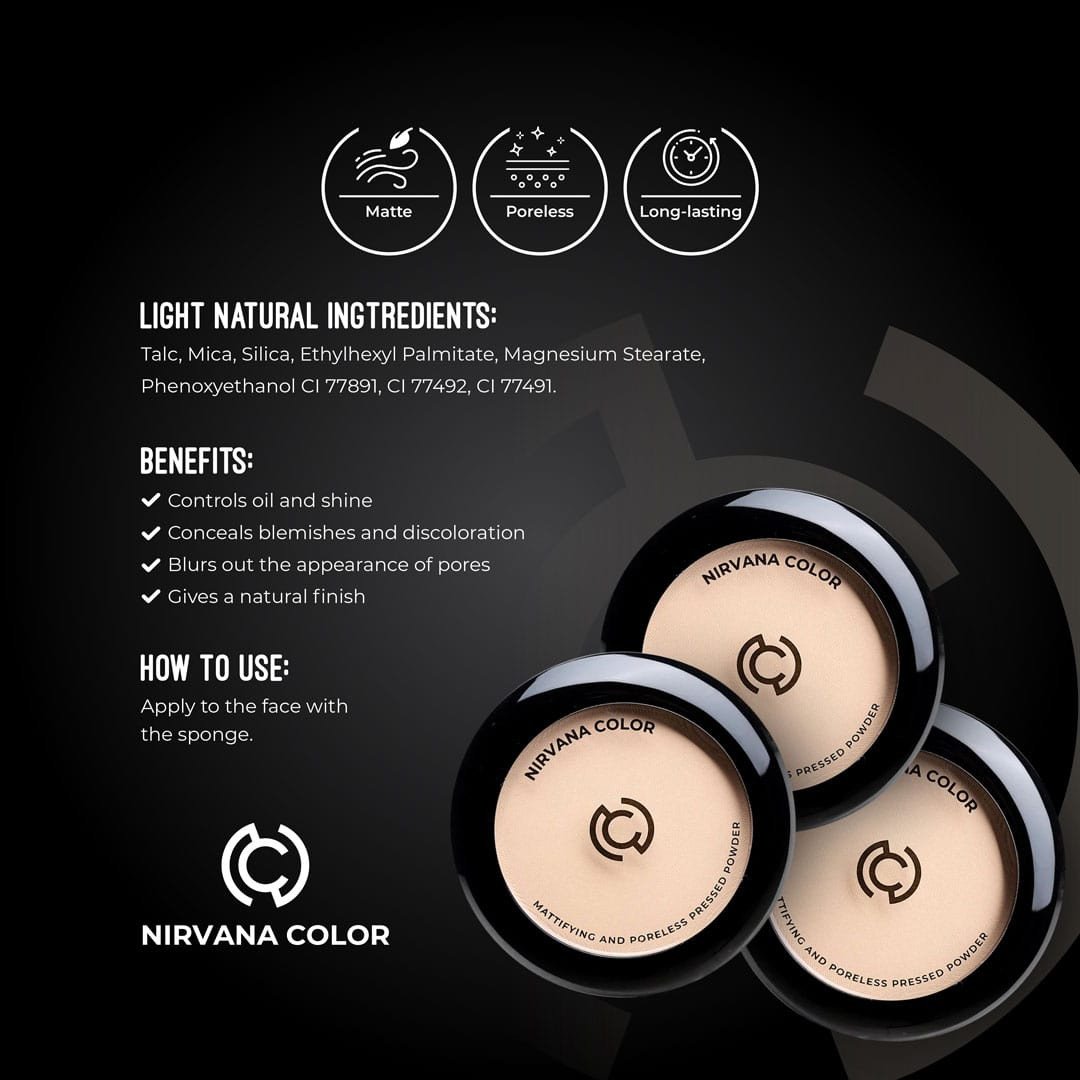 Nirvana Color Mattifying and Poreless Pressed Powder (Light Natural)