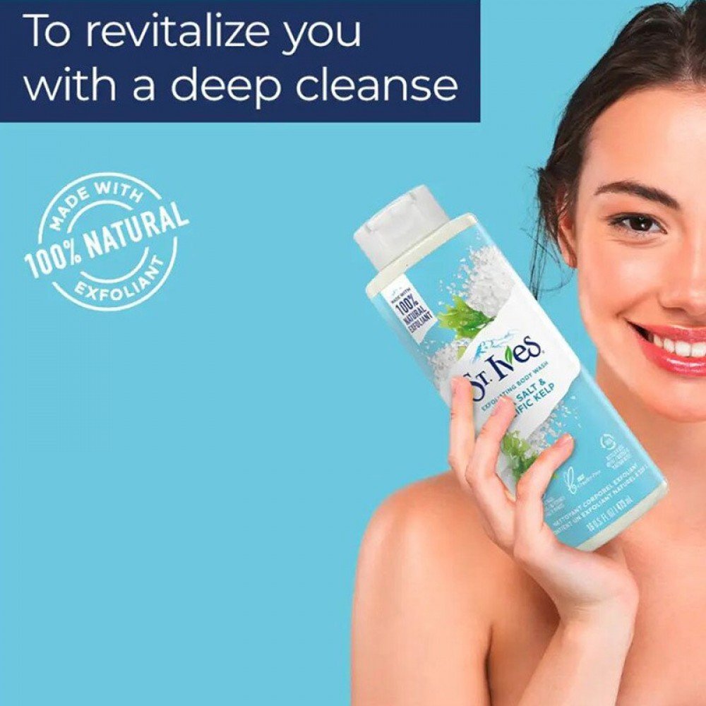 Revitalize and refresh your skin with St. Ives Sea Salt & Pacific Kelp Exfoliating Body Wash. Infused with natural sea salt and Pacific kelp extract, this body wash gently exfoliates, removing dead skin cells while cleansing and nourishing your skin. It leaves your body feeling smooth, energized, and naturally refreshed—perfect for an invigorating daily shower.