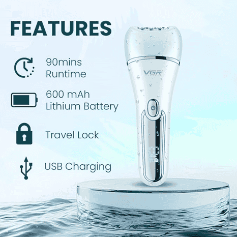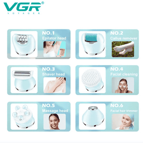 The VGR V-733 is your complete personal care solution, combining 6 essential grooming tools in one sleek, waterproof device. Designed especially for women, it helps you achieve salon-like results at home – from facial cleansing to full-body hair removal and massage therapy.